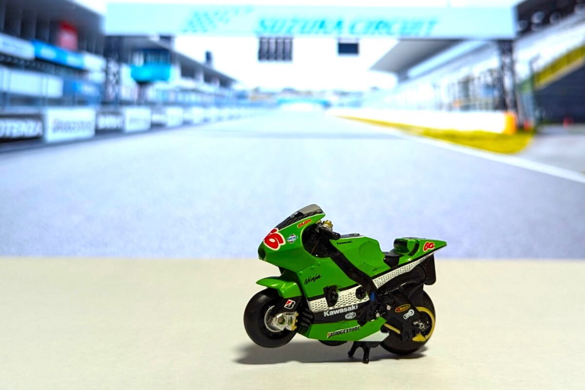 カワサキは1982年を最後にロードレース世界選手権から遠ざかっていましたが、満を持して2002年からロードレース世界選手権「MotoGPクラス」に2002年後半から2009年に参戦を開始しました。初年度はスーパーバイク世界選手権でカワサキのエースとして活躍した柳川明(第13戦)と、アンドリュー・ピット(第14〜16戦)を起用。他社のGPマシンの水準に及ばず、思ったような成績を残せませんでした。