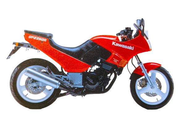 1988年にマイナーチェンジが図られ、フロントブレーキのディスクがシングルからダブルになりました。車体のGPXのロゴがNinjaに変わる変更はありましたが、パワーユニットなどはそのままに堅調なセールスを続け、1990年に発売されたZZ-R250にバトンを渡しました。