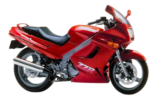 「GPX250R」は、1986年12月に発売されました。4ストローク2気筒ながら最高出力45馬力を発揮。フルカウルの大柄なボディで高速走行も楽にこなします。アップしたセパレートハンドルや、デザインを崩さない荷掛けフック、タンデムバー、センタースタンドなどを標準装備。タンク容量は18ℓとたっぷりで燃費もよく、最高のツアラーに仕上げられていました。