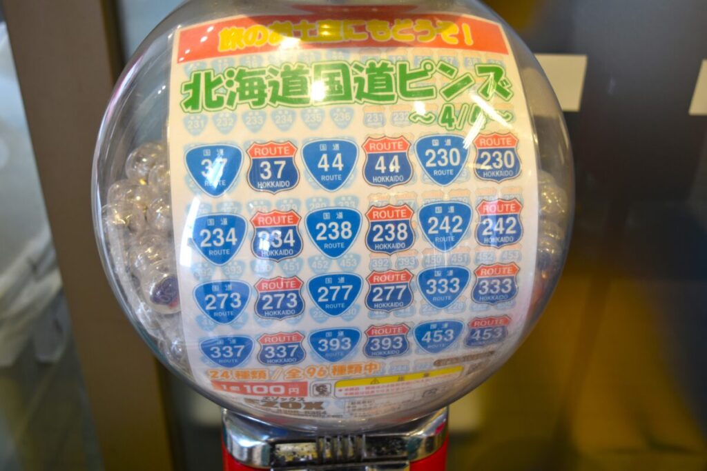 北海道ツーリング好きなら、国道334・335号線/知床横断道路」や、国道243号線/美幌峠などの国道標識を見ただけで、ワクワクする人も少なくないでしょう。北海道、千葉県、関東圏の道の駅には、ライダー心をくすぐるピンズガチャが設置されています。
