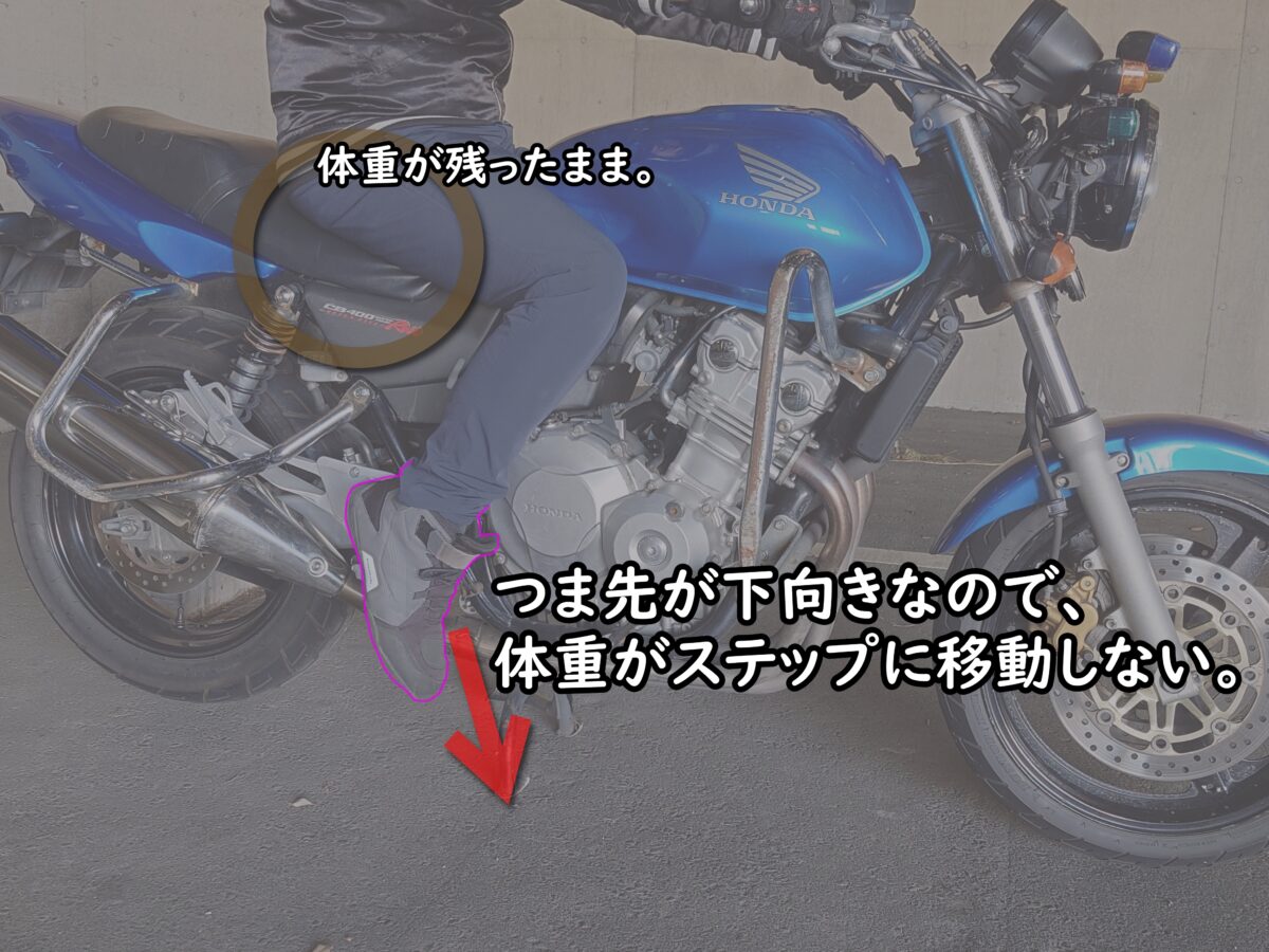 今まで二輪教習を担当した経験から足元……つまりステップバーへ体重を分散させること「楽な運転姿勢」を作る第一歩だと考えています。運転中に足とステップの位置が定まらないかたは「お尻バランス」の運転になっているかもしれません。すると痛くなりやすいのです。