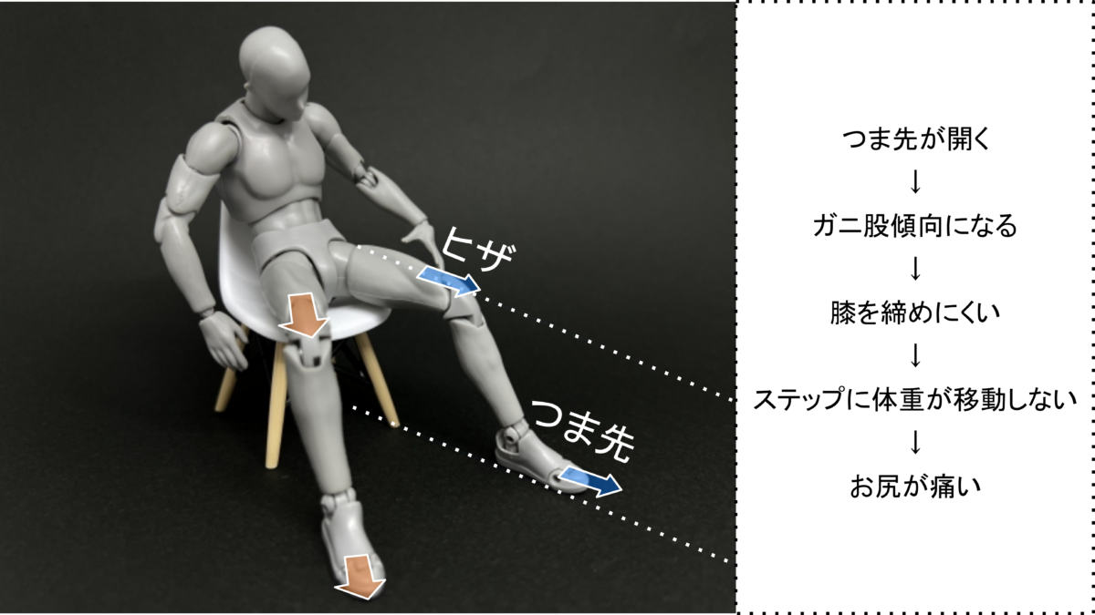 2.ステップに体重が乗らない。