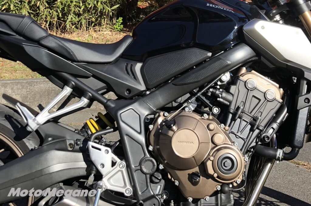カウル付きのCBR650Rの方がスポーツタイプに見えるが、乗ってみるとネイキッドのCB650Rの方がスパルタンでスポーティーに感じる。それはポジションとマスの集中化によるコンパクトな車体が要因だ。