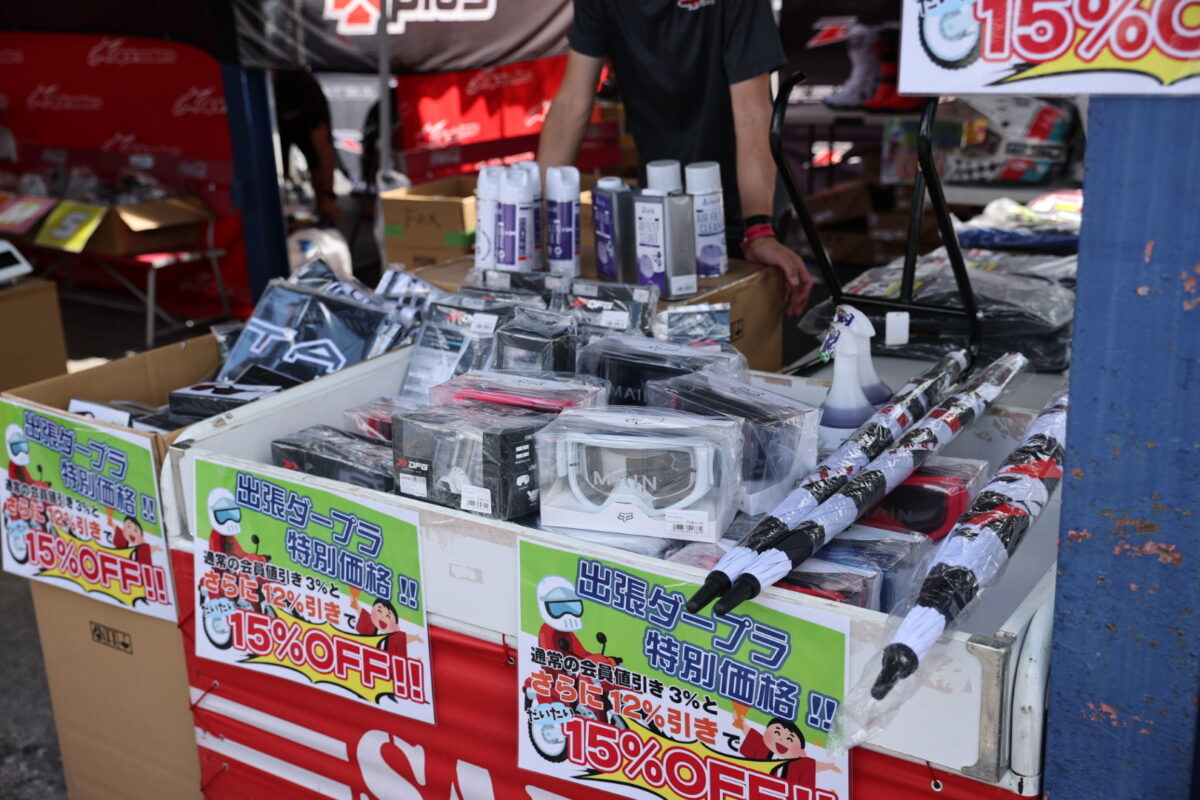 また、全日本モトクロス選手権では、ダートフリークは毎戦出店をしており、アウトレット特別価格でアパレル類を販売しています。当日帽子を忘れてしまっても購入することができます。