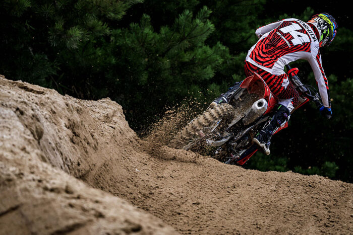 会場の名阪スポーツランドは山の起伏を生かしたコースでアップダウンが激しい。タイトなレイアウトでタイム差が開きにくい分、一瞬隙を見せると順位が一気に変わることもあり、緊張感のあるレース展開が見どころとなる。さらに路面はサンド質で周回を重ねるごとにコースコンディションは荒れていき、今回も深く掘られたわだちやギャップにライダーたちは苦戦を強いられた。