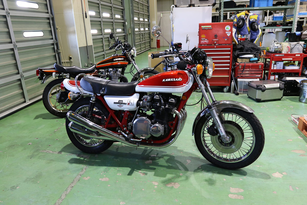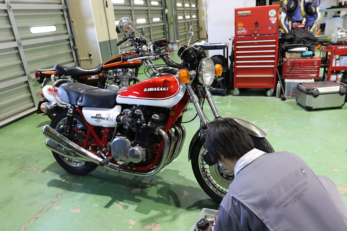 今回のカスタム作業は、デイトナのZ1乗りで話題のアジャスタブルリアショックを完成させた大場さんと一緒に行ないました。お互いZ好きですから、作業に入る前からZ談義で盛り上がる。この調子で作業は終わるのだろうか?という嬉しい疑問も持ちつつ、作業は淡々と進めていきます。