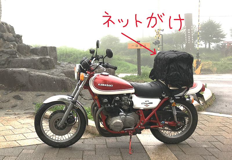 シートバッグを使う場合は、レインカバーを忘れずに携行しておくと良いでしょう。また、いかに高性能なレインカバーでも、スピードによっては走行風で膨らんでしまい、ハンドリングに影響を与えるため、カバーの上からネットを被せたり、ストレッチコードで縛っておくと良いです。ふくらみが抑えられて、安心して走行できます。