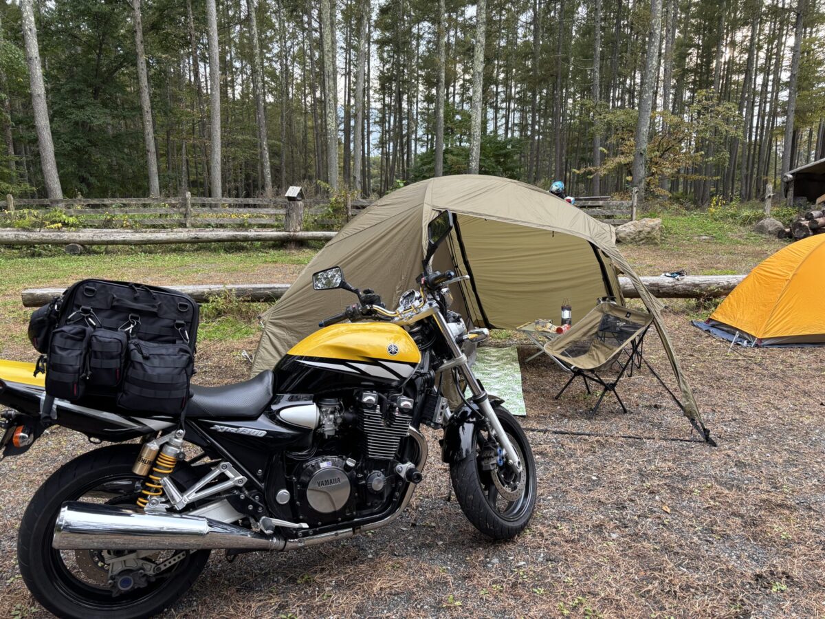 30代の主力機はXJR1300。キャンプ道具はシートバッグに入る分だけを原則として、ハードケース時代に使っていた道具類をダウンサイジング&切り捨て。特に減らしたのはランタン&バーナー用のガスボンベで、次に食器と食料。マットも無くして寝具はシュラフのみ。やがて椅子も持って行かなくなりました。それでキャンプが楽しめるのか?と言われそうですが、僕が楽しみたいのは「キャンプツーリング」なので、コレで良いのだ(笑) ただし、焚火を囲むキャンプツーリングだけは話が別。何故なら、焚火台は僕が持っていく係りだったので。体積としてはコンパクト化できていましたが、積載重量はむしろ増えた感がありました。