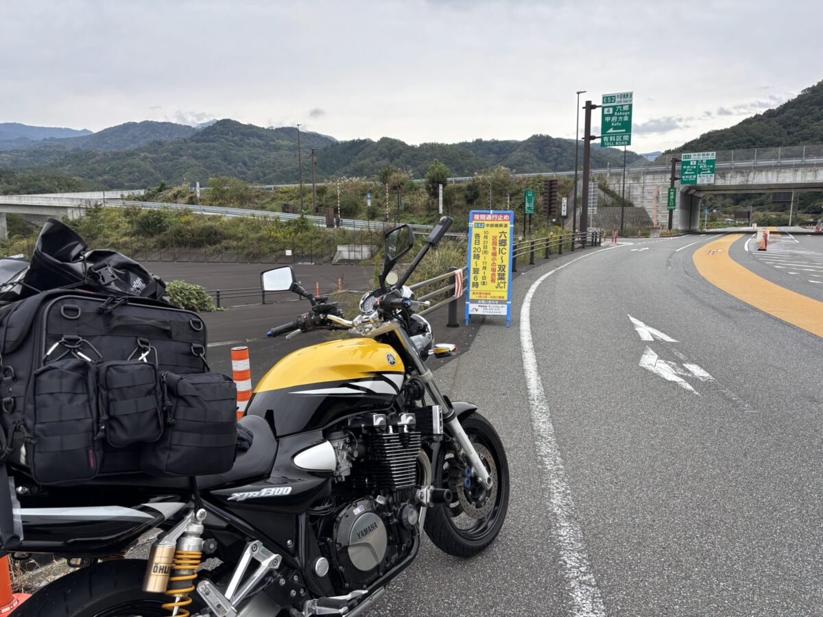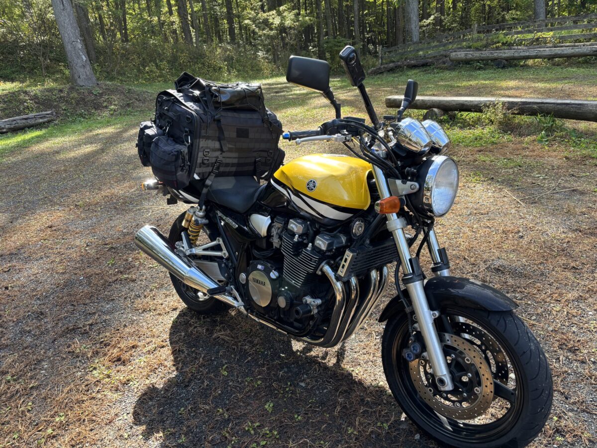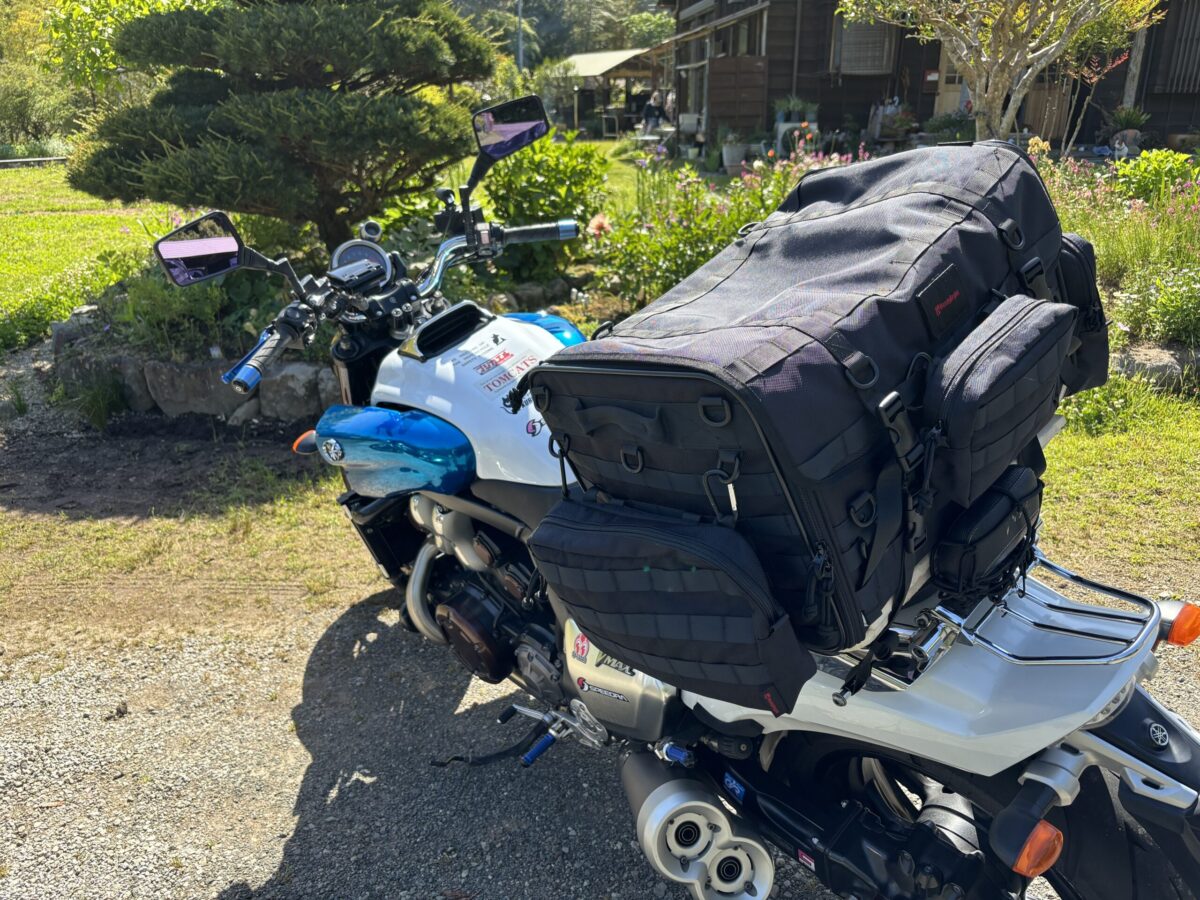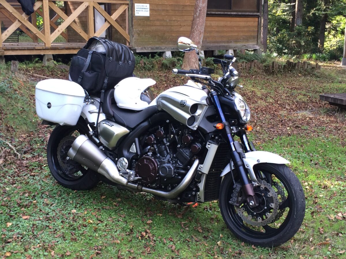 バイクは違えどもバッグは同じ。VMAX1700はパニアケースも装備しています。この時はキャンプ場のロッジ泊だったので、テントが要らない分、食材や食器類を出来る限り詰め込みました。カズ兄のZ2は、要テントのキャンプ場であったため、ガスボンベや食器類を減らし、テントを収めました。実はこの時代にテントとシュラフをコンパクトタイプに更新済みだったため、持っていける荷物の分量はXJR1300時代より増えていたと思います。