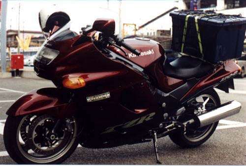 ZZR1100に乗っていた頃は、ホームセンターで格安購入できるBOXをパニアケース代わりに使うことが流行っており、僕もあえてパニアケースを着けず、BOX使いに知恵を絞りました。固定するツールもバンジーコード→タイダウンベルト→ターンバックルと変化し、固定が上手くいくか否かに一喜一憂しました。ちなみに中身のキャンプ道具は、KLX時代と同じものがすっぽりと収まっていました。