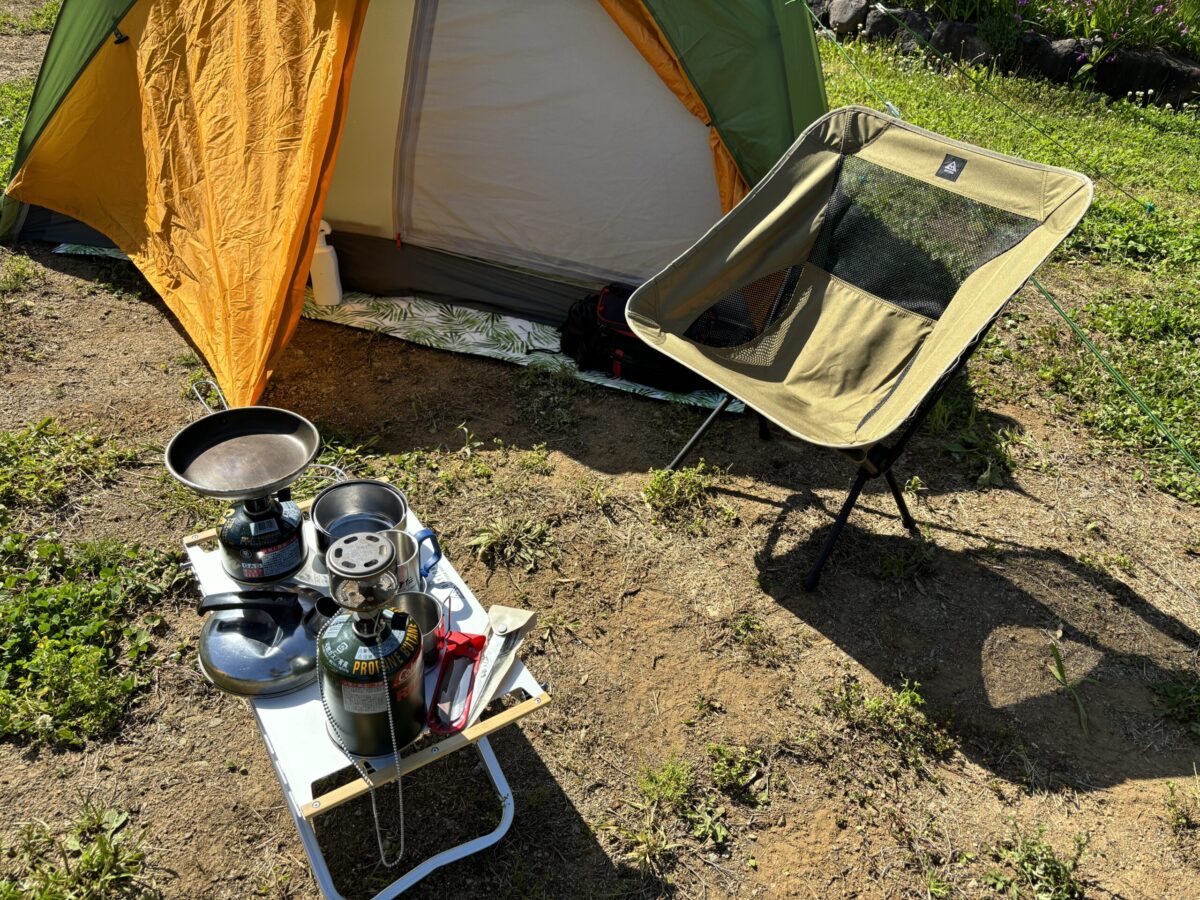 オンロードで行けるキャンプ場でも、荷物の量は大して変わらず。とにかく不便でしたが、それがまた楽しい思い出になっています。