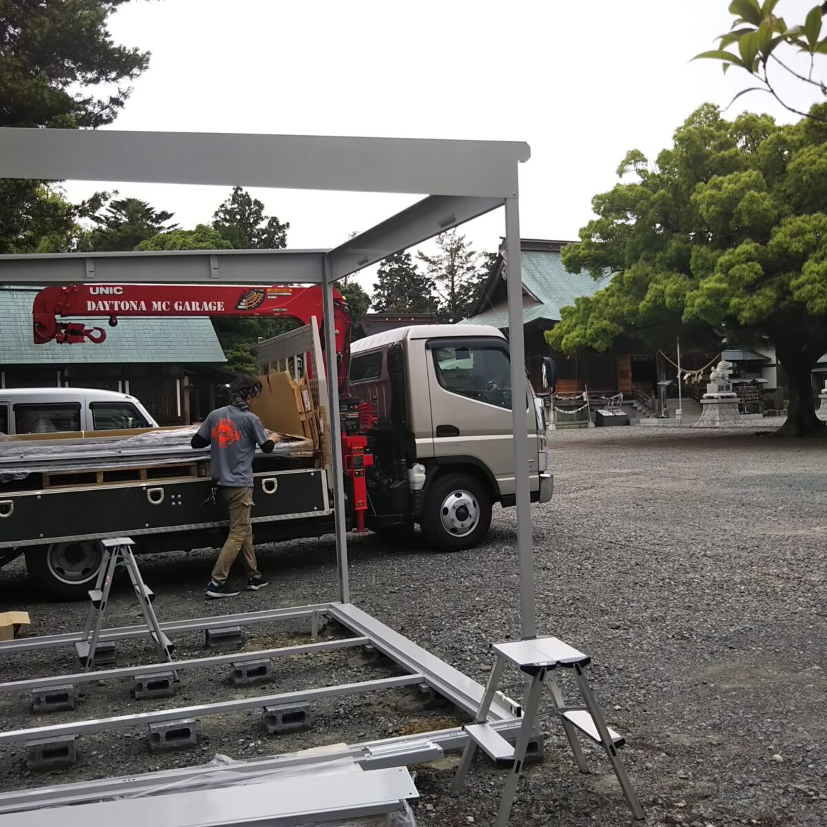 この度ご縁がありましてその大歳神社さんの境内に、デイトナベーシックガレージをドーン!と設置して来ました。