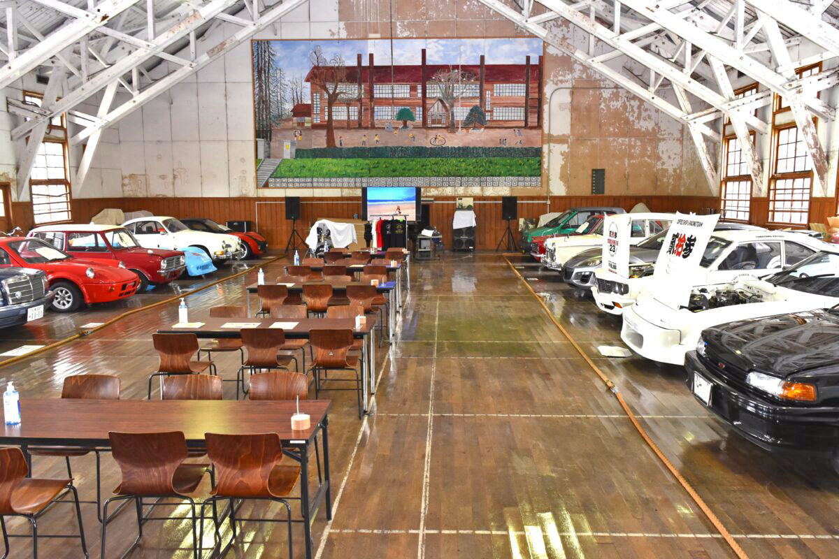 月日は流れ、札幌の横山商事が小学校跡地の倉庫を買い取ったところ、体育館と校庭もついてきました。「古い体育館には古い車が似合うだろう」という社長の考えのもと、1996年にカフェ麗燈露(れとろ)を併設した「日出クラシックパーク」がオープンしました。