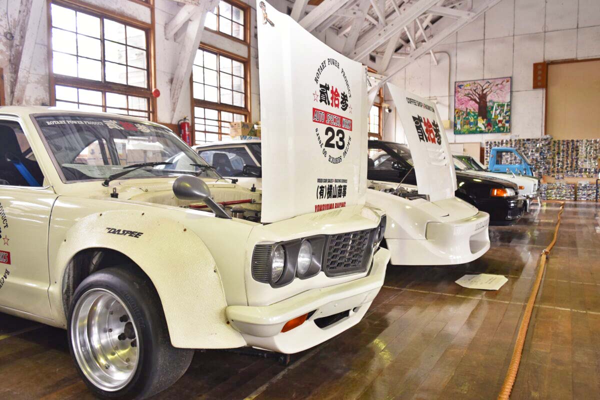 RX-8(2003~2013年)、サバンナ(1971~1978年)、初代サバンナRX-7(1978~1985年)の3台が並んでいます。サバンナはグリルの形状から後期型でしょうか。輸出名から「RX-3」とも呼ばれていました。72年に日本グランプリTS-bレースに出場したときは、日産ワークスGT-Rを撃破し、1位から3位まで表彰台を独占するなど実力を見せつけたらしいですよ(ウィキペディア情報)。
