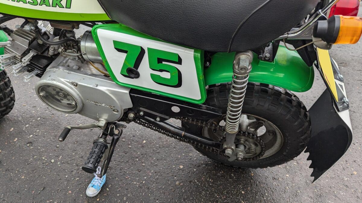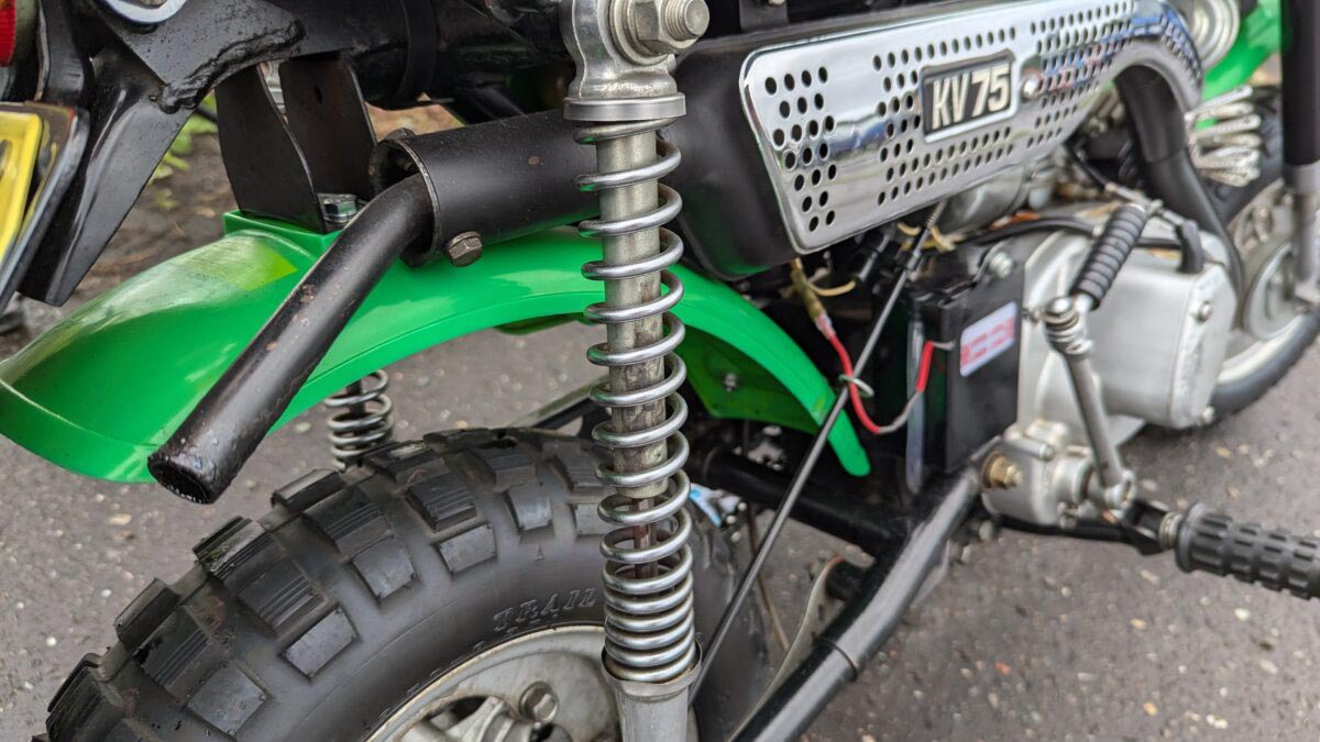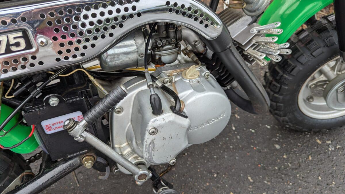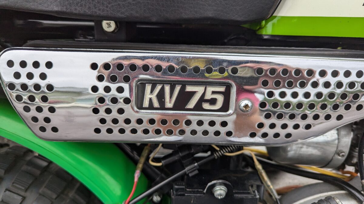 カワサキ初にして唯一のレジャーバイクKV75は、遊びゴコロは満点でしたが、ホンダのモンキーやゴリラのような人気を得ることができませんでした。その理由をサイドカバーから読み取る事が出来ます。