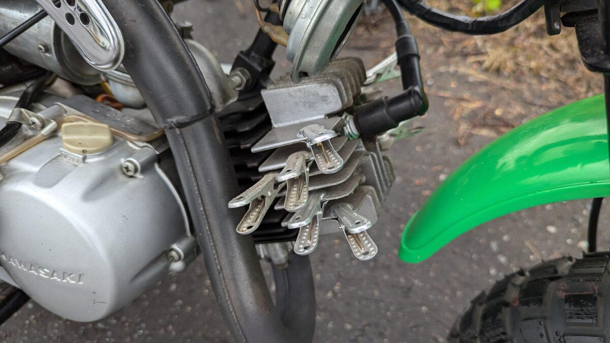 オーナーさんは、空冷エンジン必須アイテム「金属製洗濯ばさみ」でカスタムしています。これによって風を集める効果が増大し、冷却効果が得られると言われています。残念ながら空冷エンジンの減少、プラスチック製洗濯ばさみの普及、何よりも効果がないことが知れ渡り、このカスタムを見かける機会はめっきり減りました。