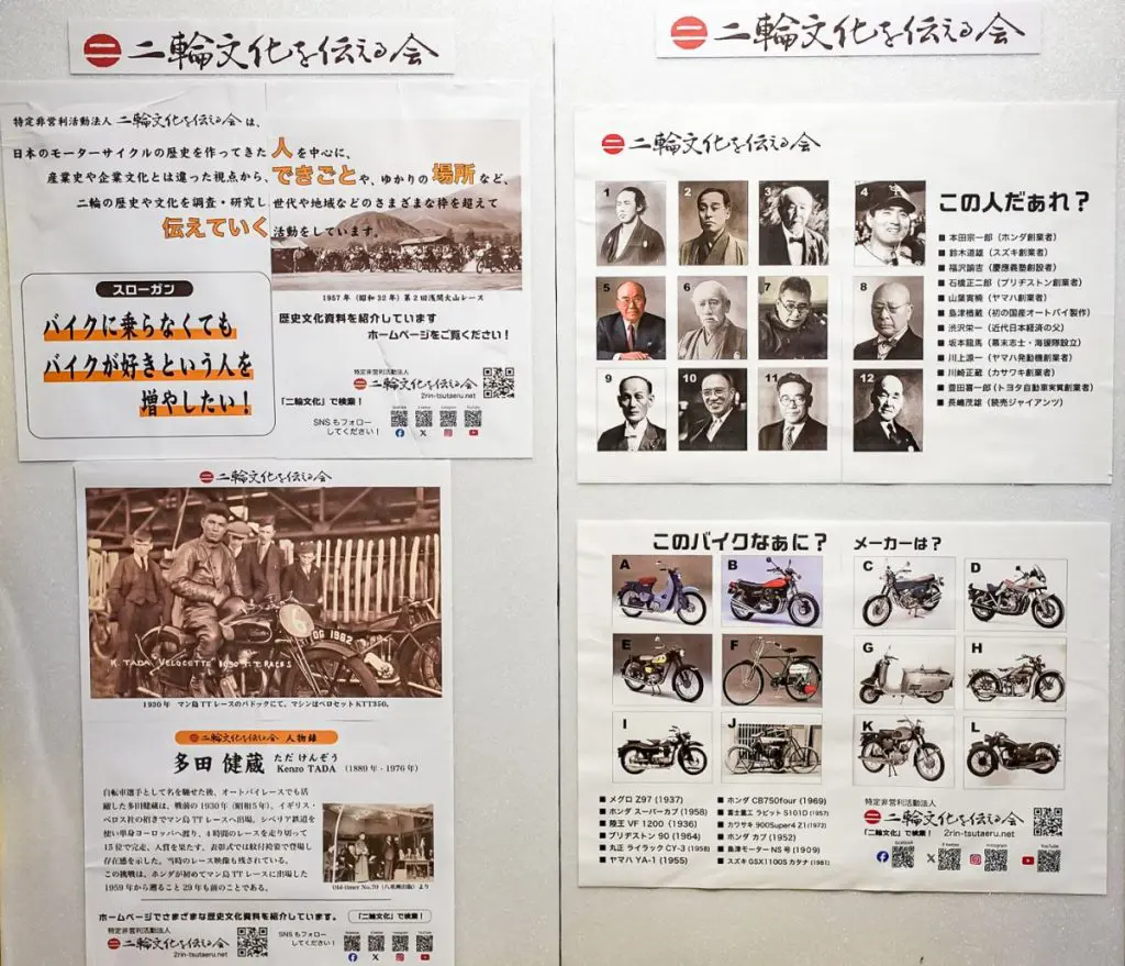 松島さん:例えば、こういったパネルを展示し、イベント会場を行き交う来場者を呼び止め、人物当てクイズなどを行いながら、一人でも多くの方に日本の二輪文化における歴史に興味を持っていただこうと努めています。