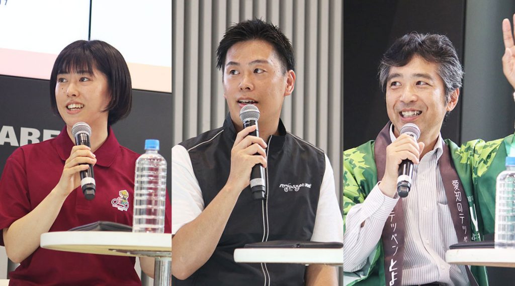 バイクを通じて地域を盛り上げる活動を行っている3つの地方自治体から担当者が登壇