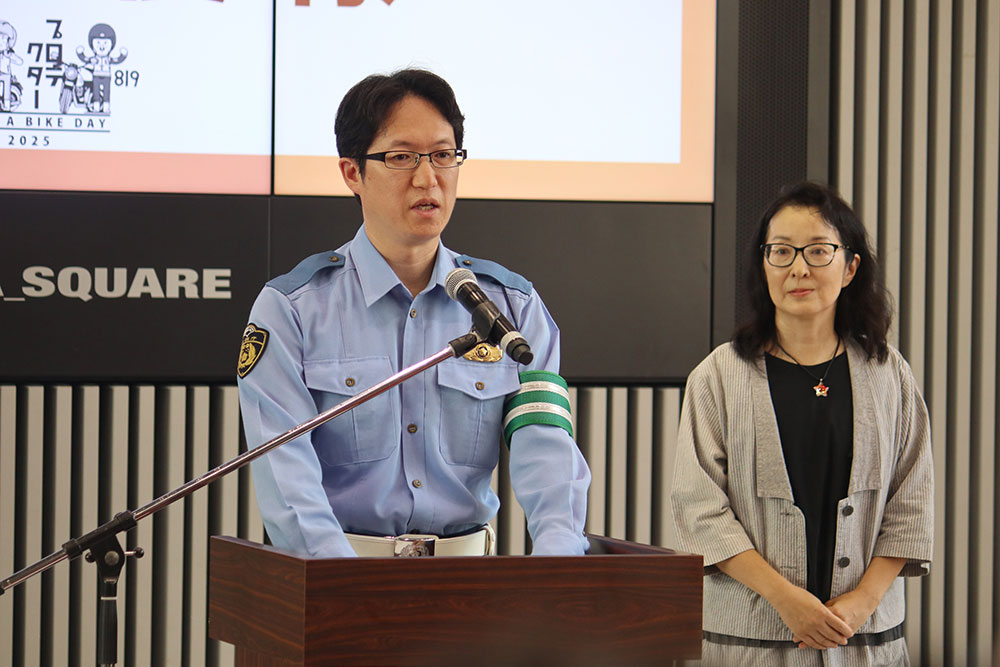 「皆様、こんにちは。今年も全国各地で猛暑日が続く厳しい暑さとなっていますが、本日は非常に暑いなか、『8月19日はバイクの日 HAVE A BIKE DAY』にご参加いただきましてありがとうございます。また、このイベントにご後援を賜わります内閣府、警察庁、警視庁 交通部、一般財団法人 全日本交通安全協会、一般社団法人 全国軽自動車協会連合会、一般財団法人 日本モーターサイクルスポーツ協会の皆様には厚く御礼を申し上げます。