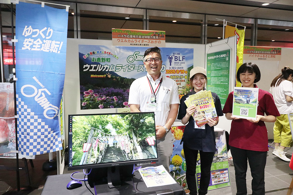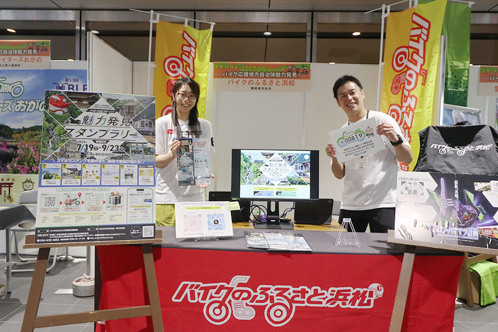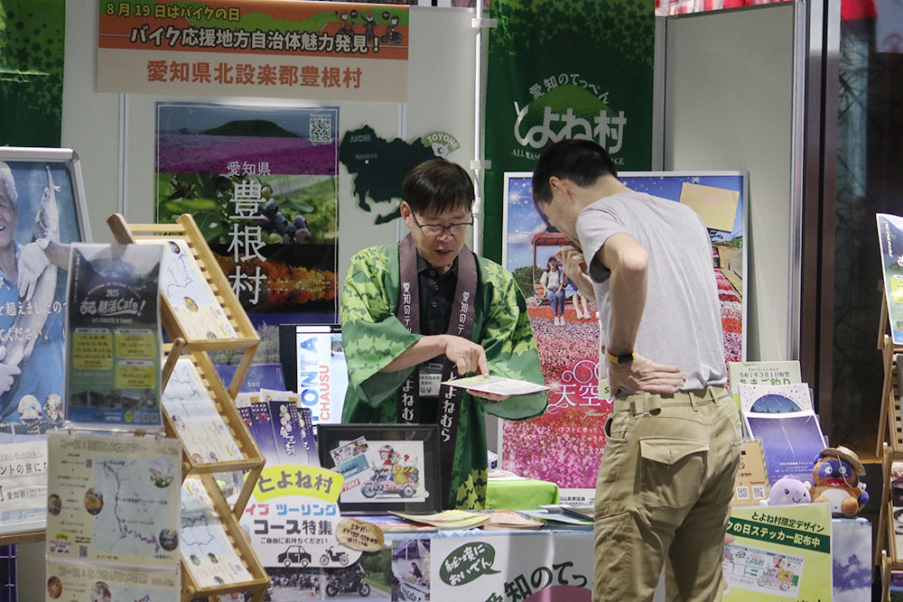 バイク応援地方自治体紹介コーナーには、埼玉県小鹿野町、静岡県浜松市、愛知県豊根村がPRブースを出展しました。