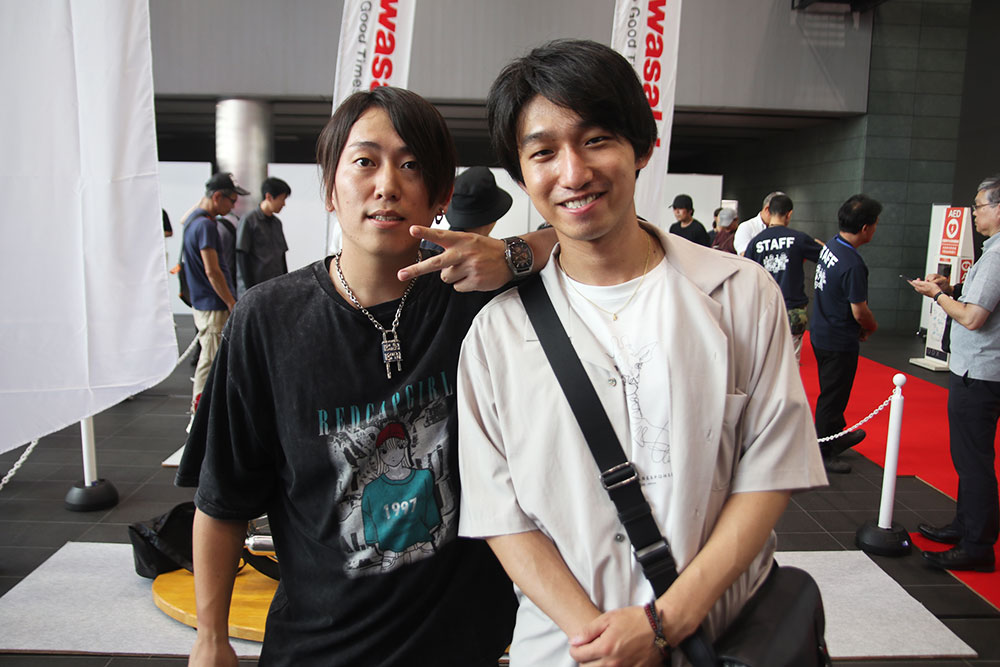 「高校の同級生で、卒業してから全然連絡を取っていなかったんですが、僕のSNSを見つけた文本くんから『今、バイクの免許を取りに行ってる』ってメッセージが届いて、バイク仲間として再会しました。それで、今日の『バイクの日』が面白そうな内容だったんで、誘ったんです。新しいバイクを見て触れられるのって楽しいですね。