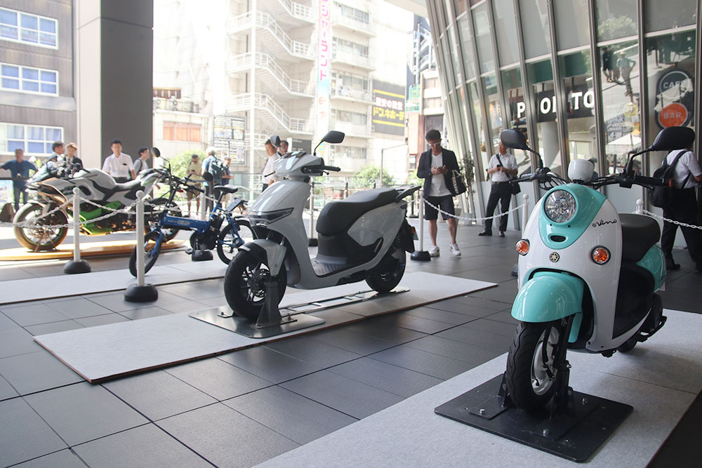 国内バイクメーカー4社のカーボンニュートラルモデルが展示