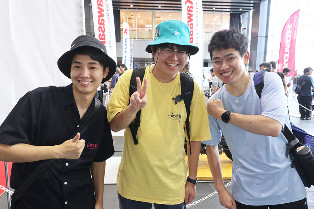 「この3人は高校の同級生です。僕とSさんはバイクに乗っていて、平本さんをバイクの世界に引き込もうと思って今日ここに来ました。免許を取ったばかりなので今は一人で乗っていますが、いずれは皆と一緒に走りたいです。気になるバイクが多くて困りますね」(D.Mさん)