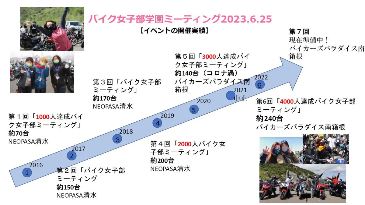 その後、年に一度、リアルに会えるミーティングとして「バイク女子部ミーティング」を定期開催(2021年のみコロナ禍で開催中止)しています。