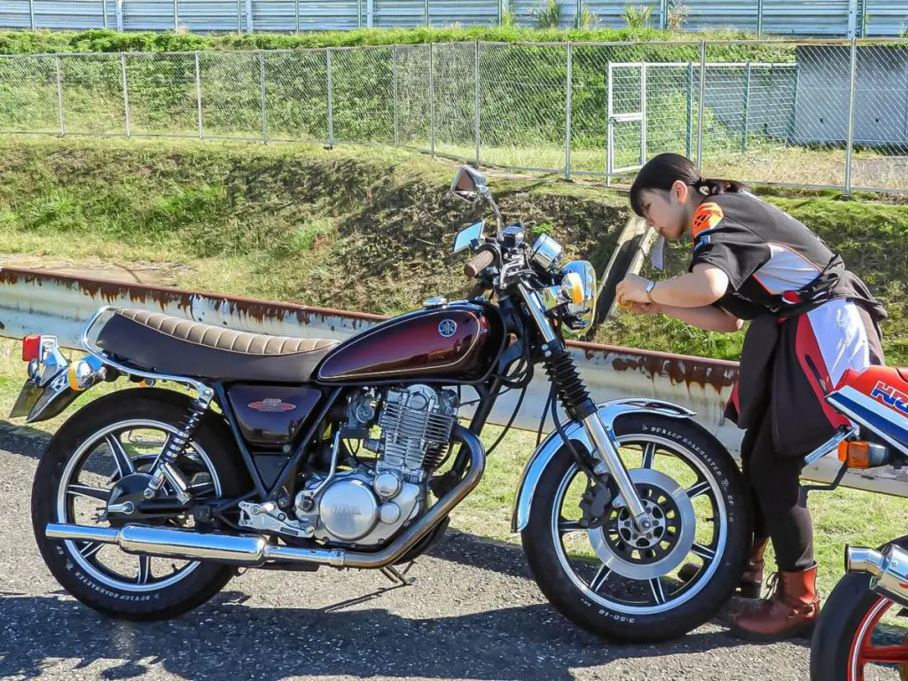 東京都から参加していたこちらの30代J・Hさんは、今回2回目の参加とのこと。バイクに乗り始めたのは20年前のことで、高校生の時に彼氏の後ろに乗せてもらったことをきっかけに、自分で運転してみたいと思ったそうです。普段は公道走行よりもミニバイク仲間に誘われてサーキットへ出向くことが多いとのことで、サーキット走行を中心としたバイクライフを謳歌されていました。