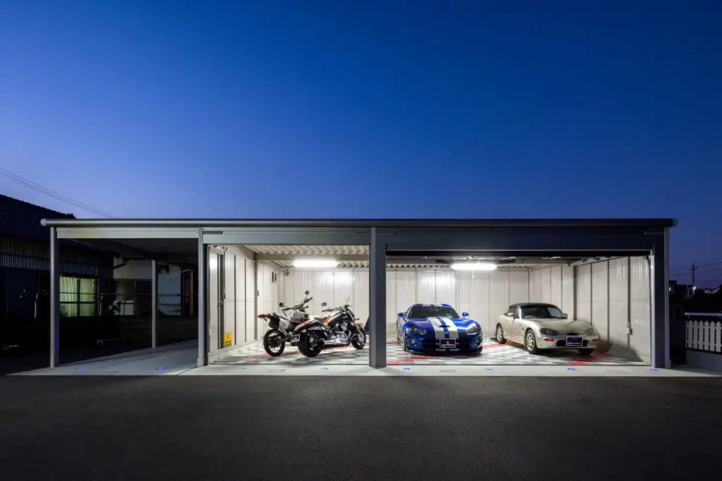 いずれもバイク用ガレージとして販売していますが、バイク保管のみに留まらず、アウトドア、ロードバイク、釣り、サーフィン、スノーボードなどといった趣味用品の保管や、DIYでカスタムも楽しめるガレージとして、幅広くご使用いただければと思います。