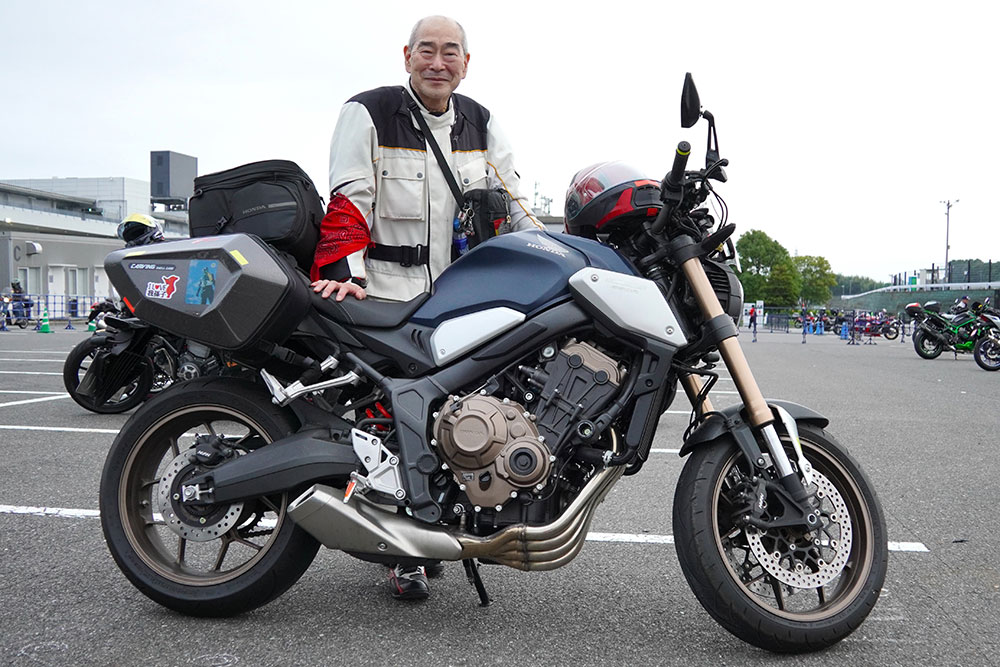モビリティリゾートもてぎで開催された昨年の『HondaGO BIKE MEETING』にも参加し、今年の鈴鹿開催を知って『いつかは鈴鹿を走ってみたい』という想いから、丸一日かけて千葉からやってきました。テレビゲームで経験した鈴鹿サーキットの景色とまったく同じで、ここまで足を運んだ甲斐がありました。来年70歳ですが、また参加したいですね」
