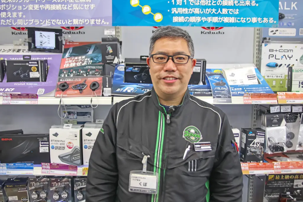 インカム専用コーナーが設けられるようになったバイク用品店の担当者は、競争の激しいインカム市場をどう見ているのでしょう。246溝口2りんかんのインカムコーナーを担当する久保達也さんにお話を伺いました。