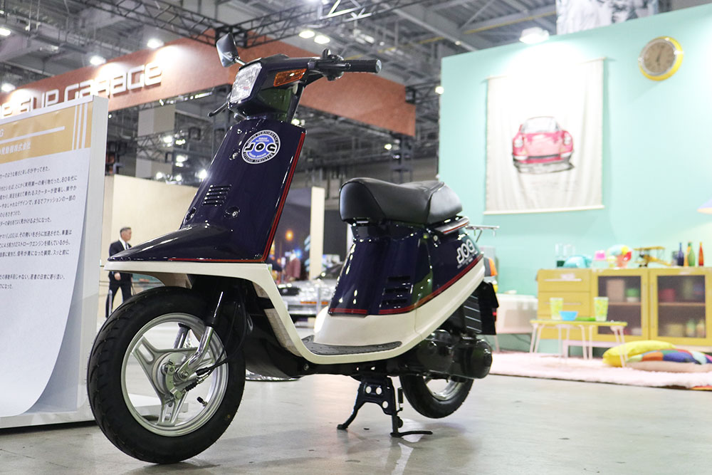 今日まで継続販売されているヤマハの原付スクーター「JOG」(ジョグ)。展示されていたのは初代モデルで、1983年3月に発売されました。乾燥重量49kgという軽量な車体に、4.5PS※を発揮する強制空冷2ストローク単気筒エンジンを搭載しているのが特徴です。当時は販売価格が10万円以下だったことから、その価格帯と扱いやすさなどにより大ヒットモデルとなりました。