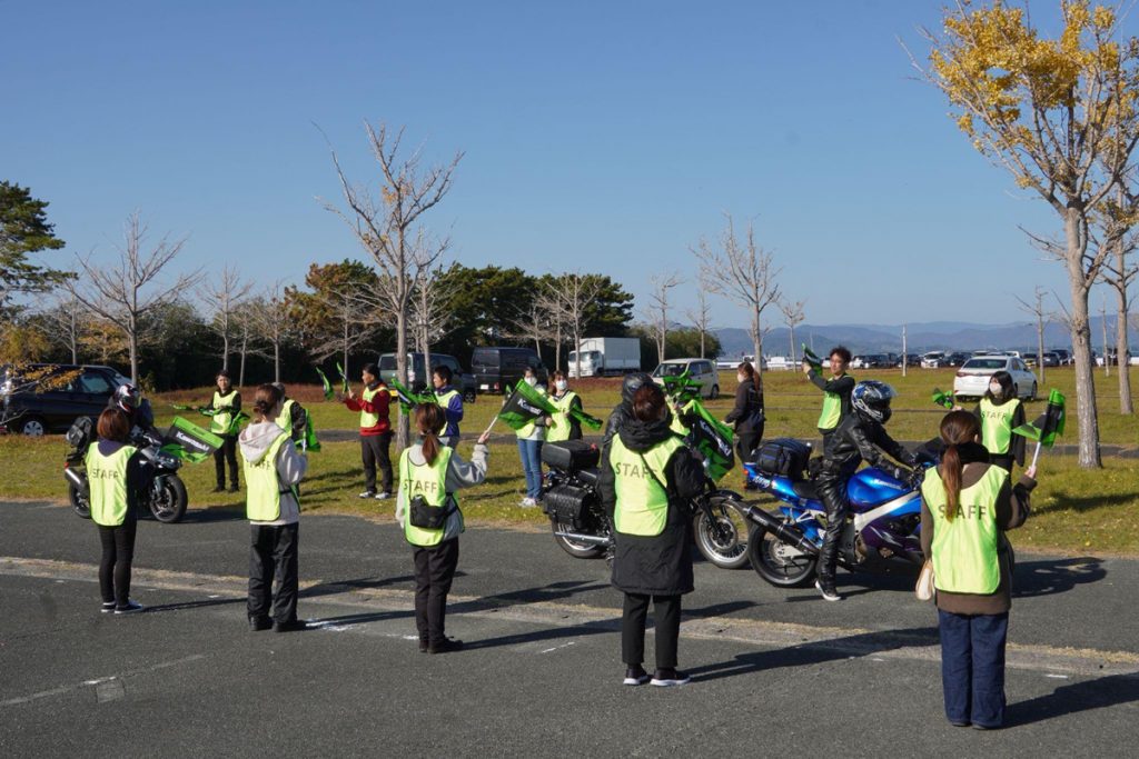 今年は3月に徳島県の「沖洲マリンターミナル」、6月に岩手県の「夏油高原スキー場」、10月に新潟県の「かぐらスキー場みつまたステーション」、そして今回は静岡県の「浜名湖ボートレース場」にて開催され、合計で4回の開催となりました。過去には年に10回開催された年もあり、累計参加回数が100回を超える熱烈なカワサキファンも存在しています。