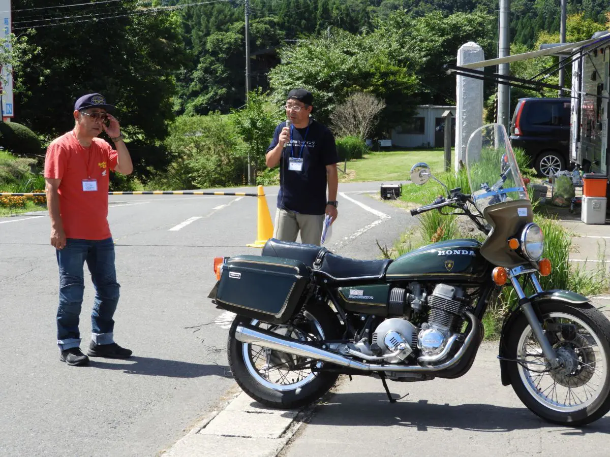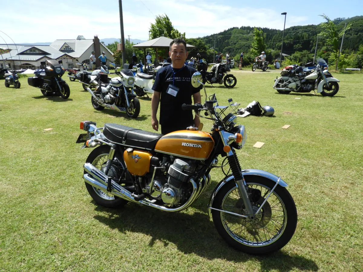 大きく横に張り出したサイドカバーが特徴的な1974年式のホンダ「CB750FOUR」で参加していたH.Iさんは、約12年前に会社の先輩からミーティングイベントのことを教えてもらい、参加するようになったそうです。