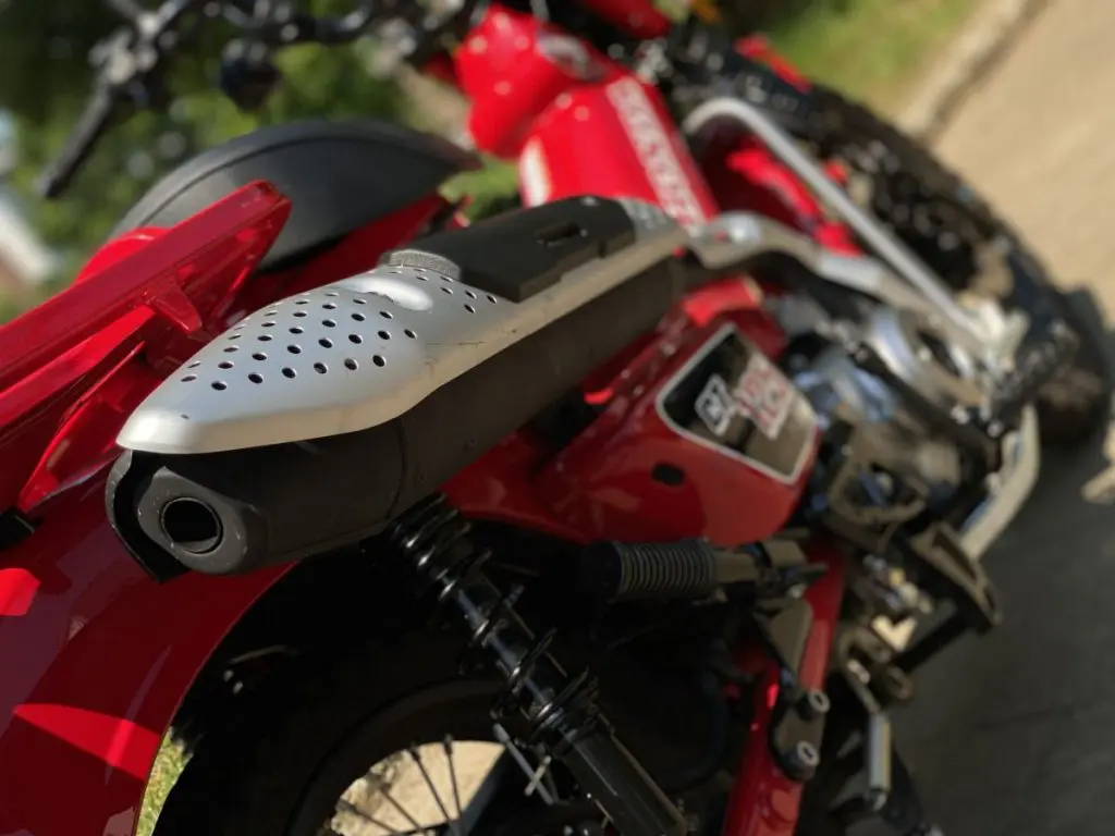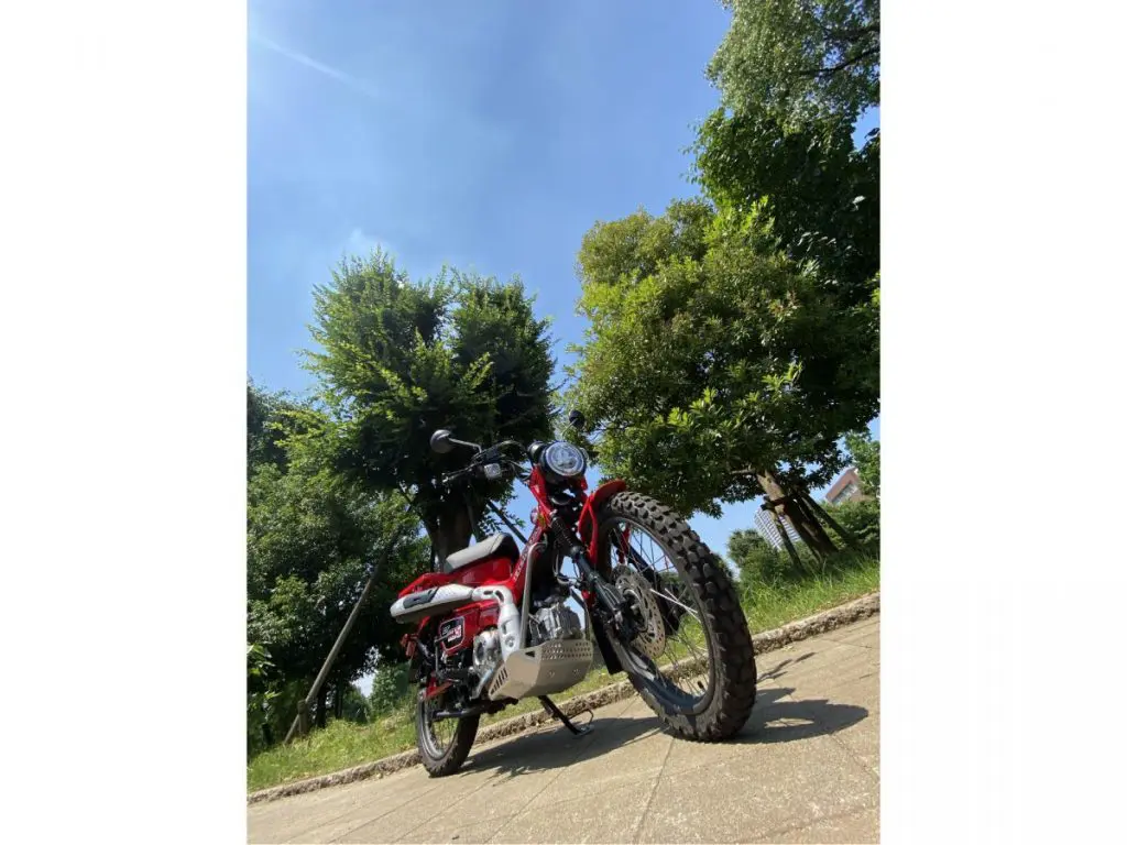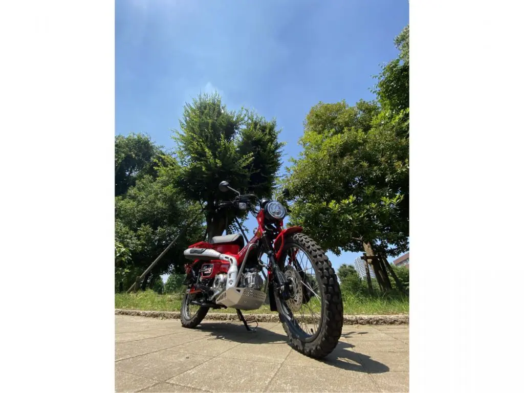 最終的に、主張ポイントであるマフラーと水平にすることで、美しく画角に収めることができました。これまたバイク雑誌に載ってそうなハイクオリティ写真の出来上がり!