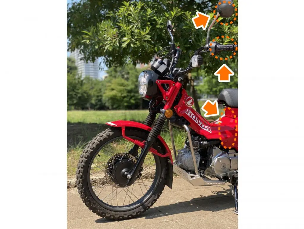 しっかりと寄ることも大切ですが、ミラーやグリップ、サイドカバーなど、そのバイクの特徴的な部分はしっかりと画角に入れ込むことで、「何が見せたいか」だけではなく「何のバイクか」も同時に見せることができます。