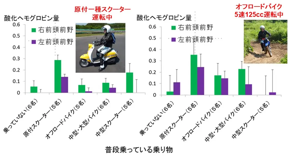 MTバイク利用はスクーター利用よりも脳が活発に働く傾向