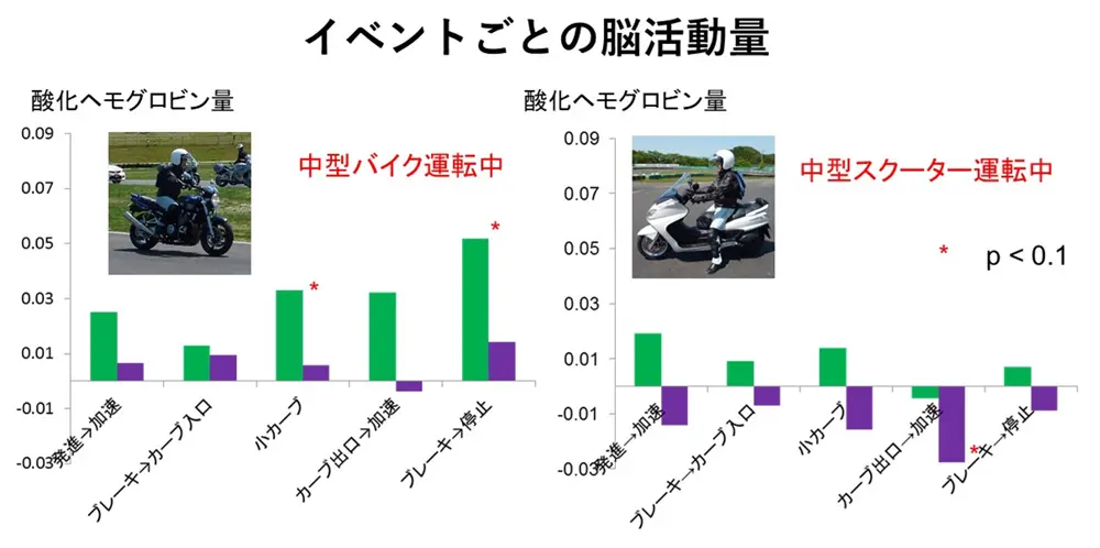 また、スクーター利用者でもひとたびバイクに乗ると、まるで呼び起こされたように脳の動きが活発になる面白い傾向も見られた。