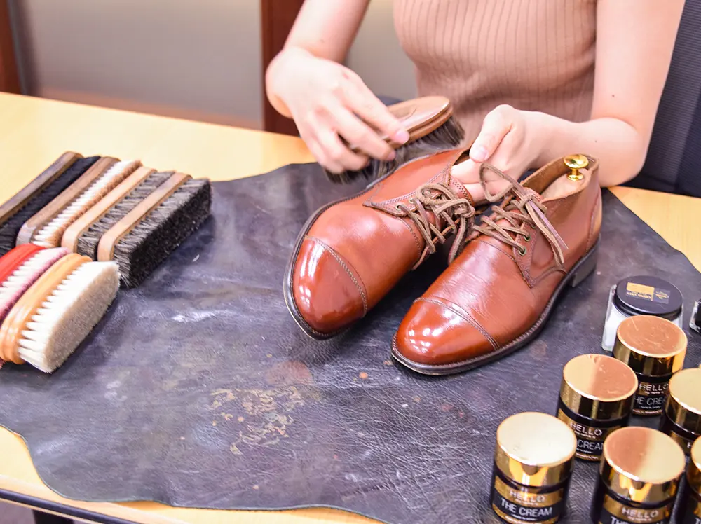 なお、いとさんの靴磨きのスタイルは、より多くの人に靴磨きを楽しんでもらいたいという思いから、昔ながらの駅前の路上で足を出してもらって磨くスタイルではなく、対面で椅子に座り会話を楽しみながら靴が綺麗になる過程も見せるというパフォーマンス要素も加わったスタイルです。靴を買った時の思い出や普段どのように磨いているか、自宅でもできる靴磨きのアドバイスを交えてお話しながら磨くことで、お客様は自身の靴により愛着が湧くようになってくれるそうです。