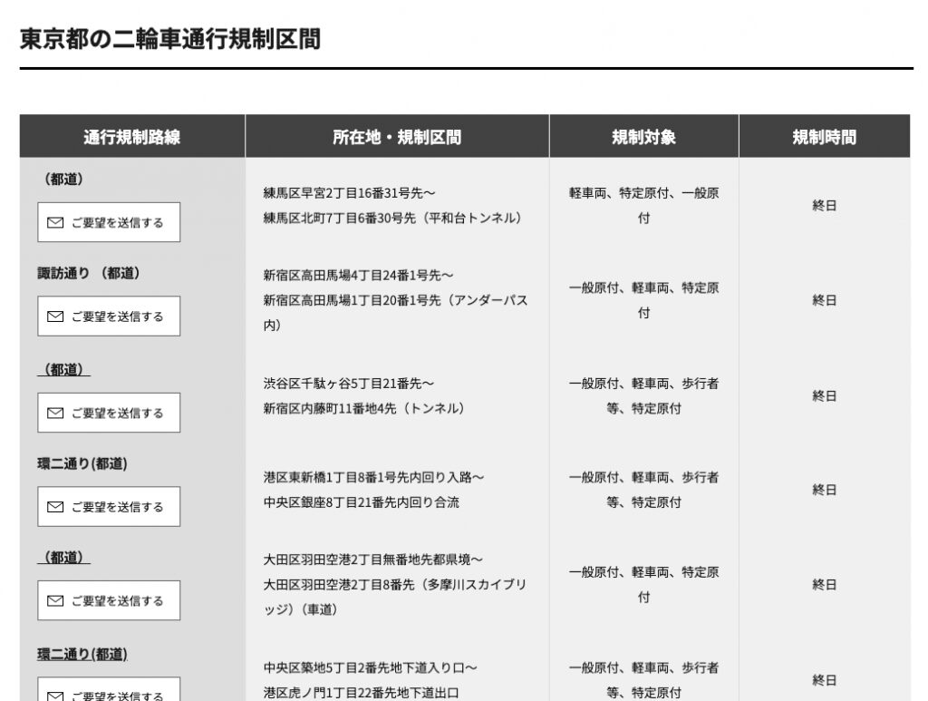 都内の二輪車通行禁止道路を調べてみた