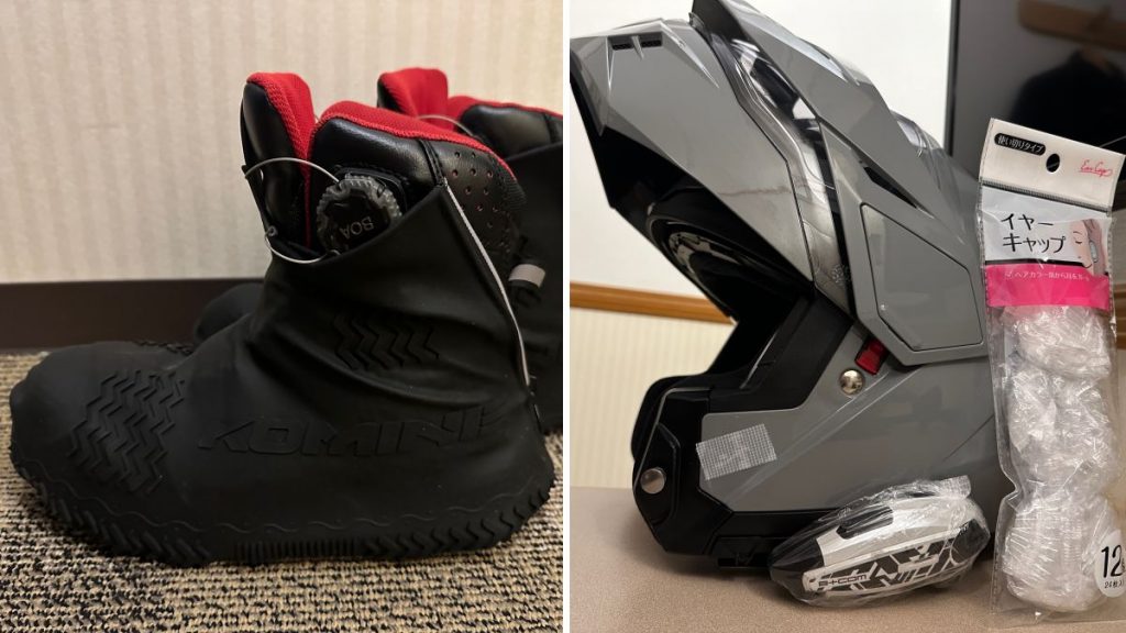 仲間との会話だけでなく、ナビの音声案内や音楽を聴くためにインカムを使用するライダーも増えてきました。防水性能があっても長時間雨中に晒されると故障の原因になるため、SNSで見かけた「100円ショップの染髪用耳カバーが良いらしい」という情報を参考に使用してみました。確かにシンデレラフィット!ただし破けることがあるので数枚持っていくといいでしょう。