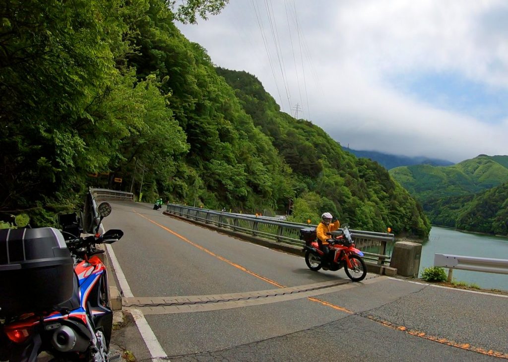 特急列車の愛称の由来にもなっている梓川沿いに、巨大なダムをいくつも横目に見ながら北アルプスに向けてグングンと高度を上げて走っていくと、前日までに完走を果たしたと思われる、ゼッケンを付けたバイクと何台もすれ違い挨拶を交わしました。元々登山などでもすれ違いの際には挨拶を交わしますが、大昔はクルマでも夜中に交通量の少ない峠道などですれ違う際にはチカチカとハイビームにすることもありました。バイクではその風習が残っていて、特に観光地でピースする姿をよく見かけます。この挨拶のことは一部で「ヤエー」と呼ばれますが、20年以上前、某巨大掲示板のバイク板で「初めて北海道ツーリングしたら嬉しくてたくさんYAEHしました(^^)v」という趣旨の書き込みがあり、イェー(YEAH)のスペルミスであったことがウケて拡散したのが起源と記憶しています(諸説あり。異論は認めます)。
