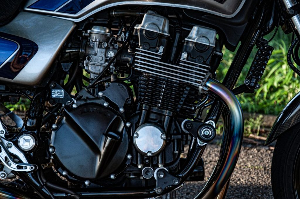 「バイクの心臓部であるエンジンまわりでは、エンジン下部やパーツの合わせ目などからオイルがうっすらにじんでいたり、漏れたりしていないか注意深く観察しましょう。できればエンジンをかけてもらって、変な音がしないか、異常な振動がないかも確認できれば安心です。