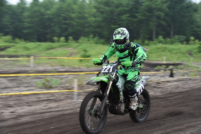 バイクの挙動を低速域で学べるオフロード。滑りやすいことから転倒することも十分考えられます。