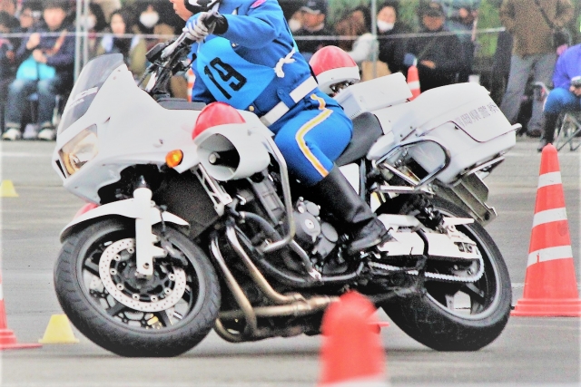 白バイ隊員はあらゆる路面状況での訓練を行っている。