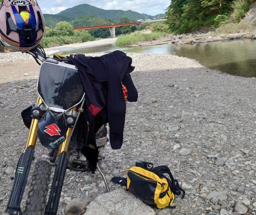 オフロードバイクは楽しみながら安全マインドを醸成できる絶好の環境といえるでしょう。想像以上に体力を使うので、水分補給とタオルも忘れずに!