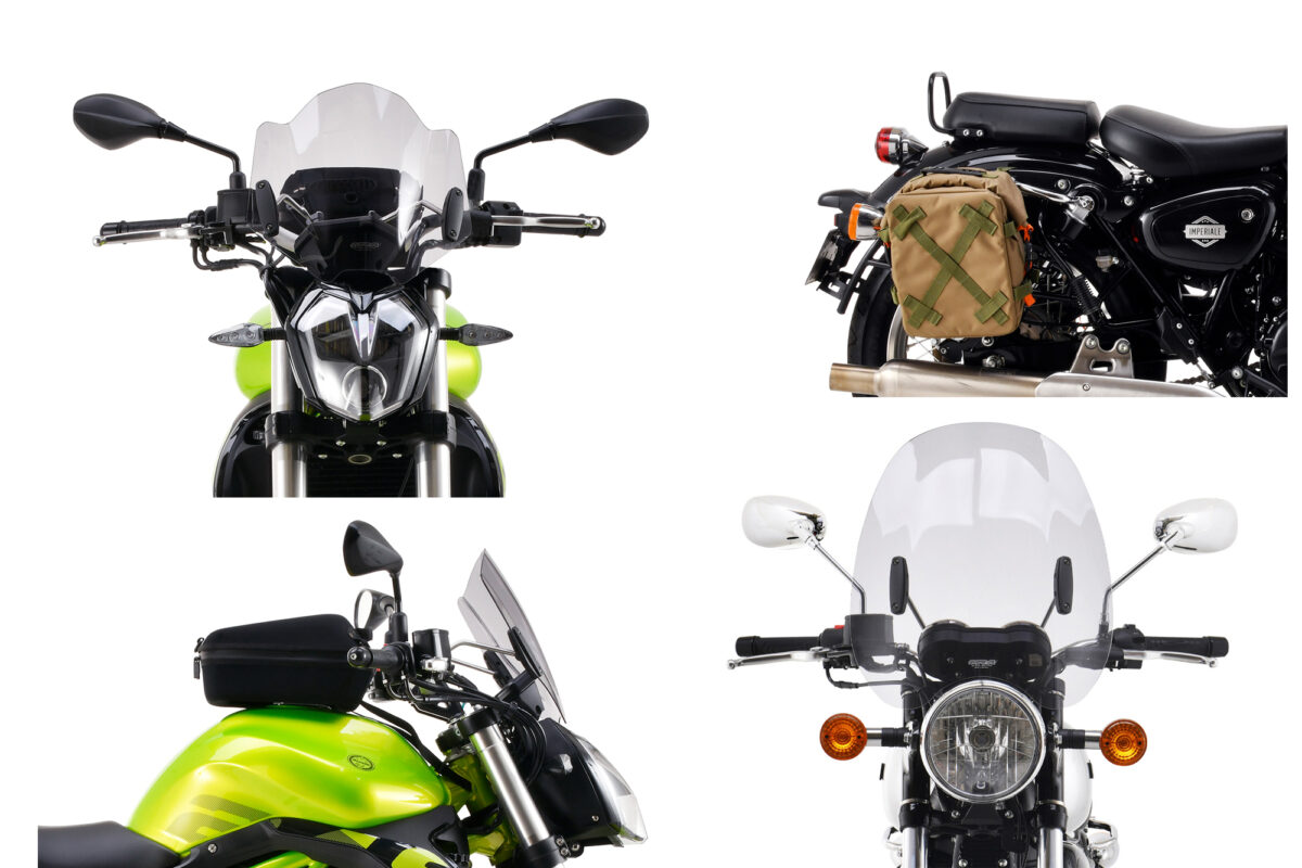 ベネリモーターサイクル輸入元 株式会社プロトでは、世界からさまざまな厳選したオートバイ用品の取り扱いがあります。その中からツーリングに最適な、防風効果のあるスクリーンやマグネットでしっかり固定できるタンクバッグ、シートやサイドに取り付けできるバッグ等をセレクトしました。