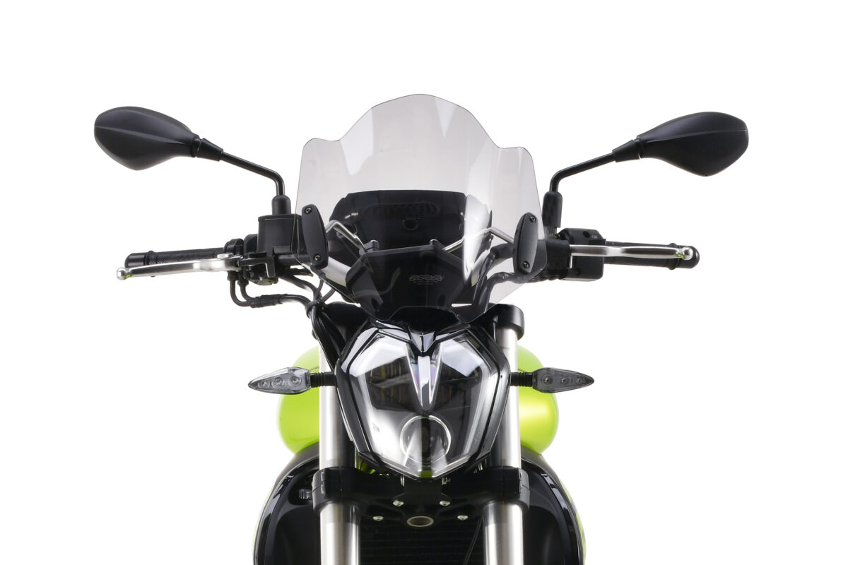 スタイリッシュなMRAスクリーン ステルス。取り付けにはマウンティングキット ハンドルポストマウントが必要です。ハンドルポストにM8ボルトで取り付けるタイプです。