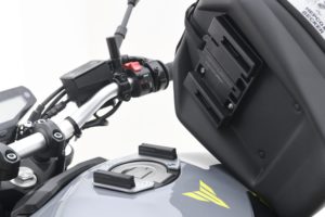 小物をいれるのに便利なタンクバッグ。専用フィッティングでしっかり固定できます。